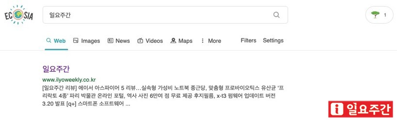 | ▲ 사회적 기업의 검색엔진 '에코시아' (이미지편집=일요주간) |