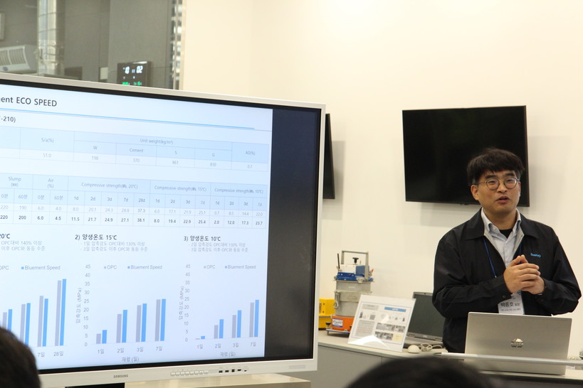 | ▲ 삼표시멘트의 고성능 친환경 시멘트 ‘블루멘트’ 제품의 우수성을 입증하기 위한 기술설명회를 진행했다. (사진=삼표그룹 제공) |