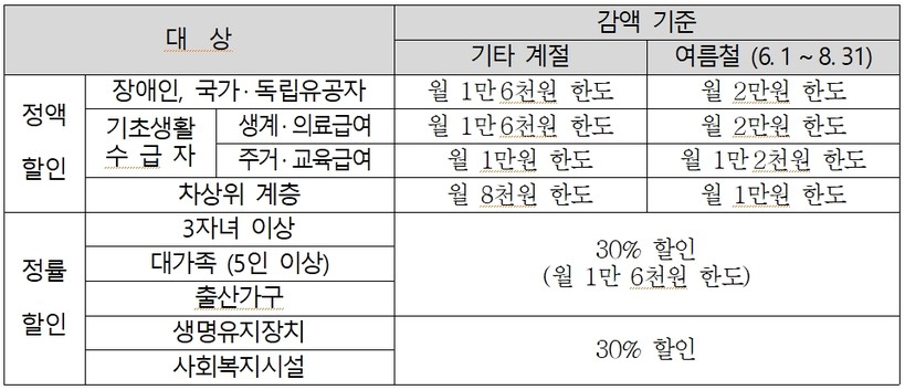 ▲ 전기요금 복지할인 제도(표=한전) |