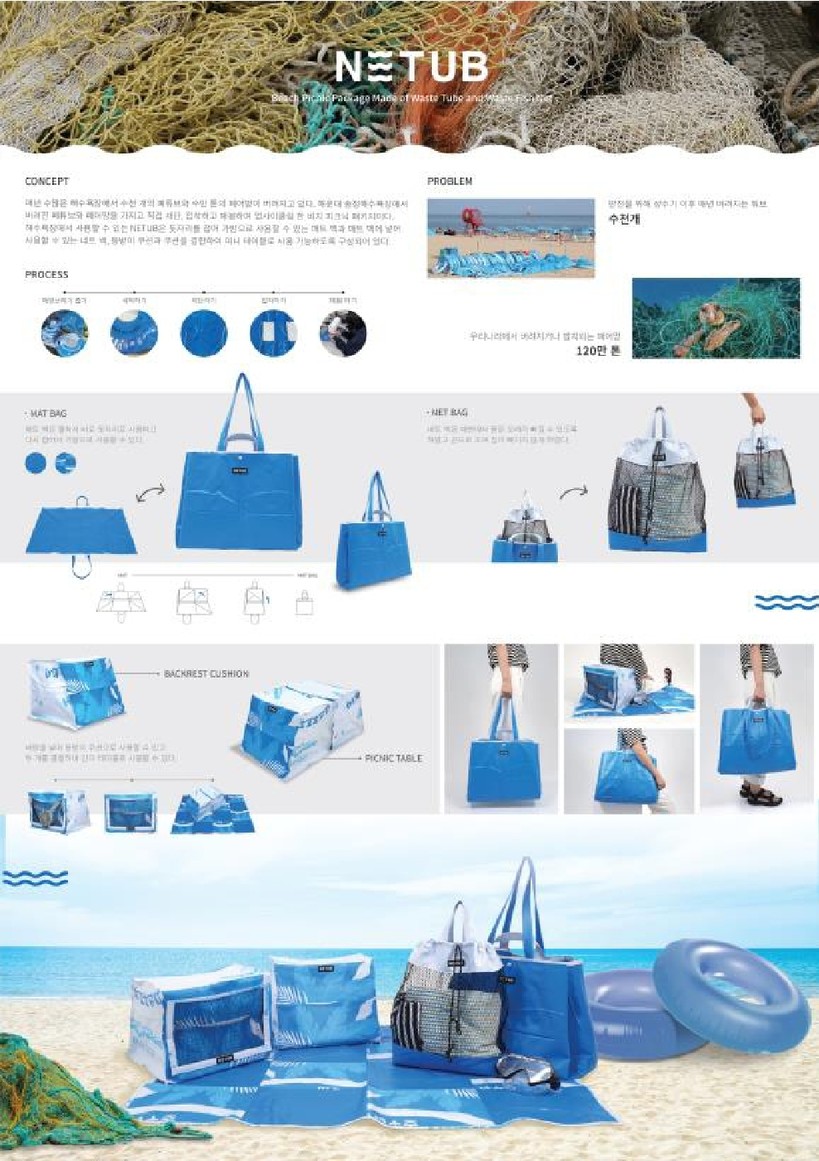 특별주제 2030부산세계박람회에서는 김선정(명지대 산업디자인전공 4학년) 디자이너가 출품한 ‘네튜브’가 대상을 수상했다. 부산 송정해수욕장에서 실제로 버려진 폐튜브와 폐어망을 직접 재봉하여 업사이클링 비치 피크닉 패키지를 선보임으로써 해양 쓰레기 발생에 대한 경각심을 일깨운 작품이다.