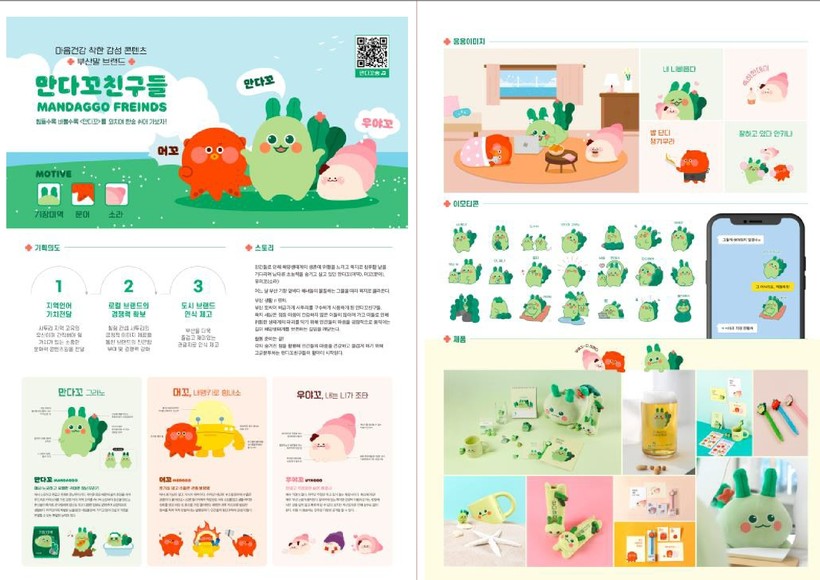 일반부 대상은 ㈜디자인부산이 출품한 ‘만다꼬친구들’ 부산말 브랜드 디자인이 선정됐다. 부산 사투리를 소재로 지역의 정체성을 강조하고 공감되는 일상 이야기에 사투리를 효과적으로 상품화한 다양한 콘텐츠를 선보였다.