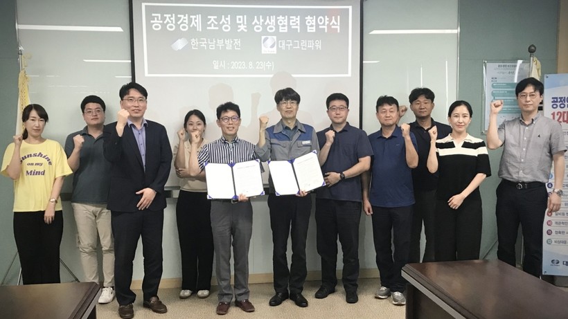 남부발전은 23일 출자회사인 대구그린파워(주)(사장 류호용), 코스포영남파워(주)(사장 강철민)와 ‘든든한 산업생태계 조성을 위한 공정경제 확신 및 상생협력 업무협약’을 체결했다고 밝혔다.