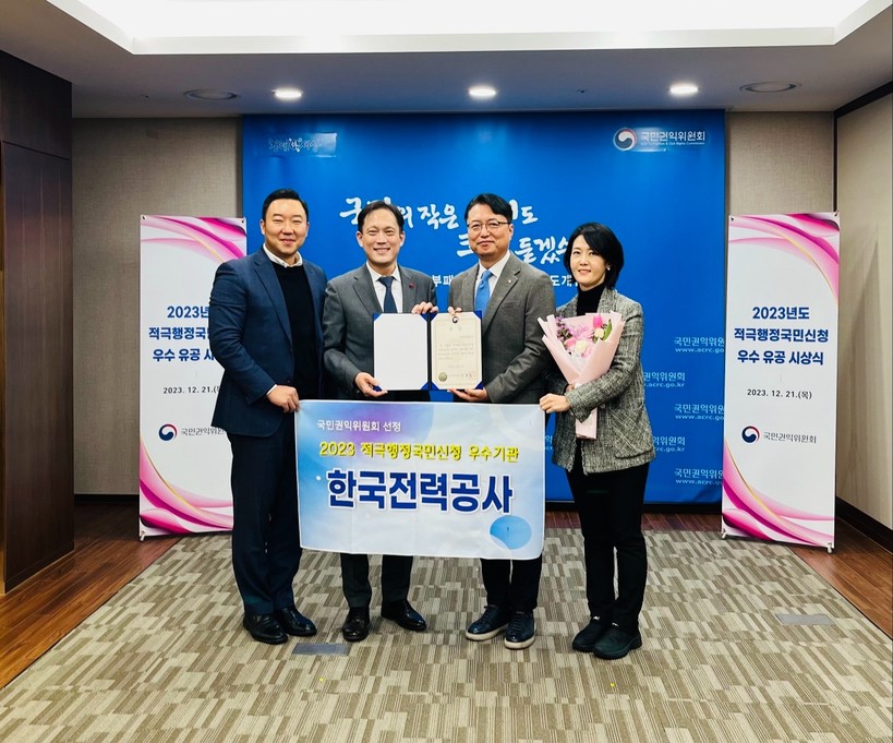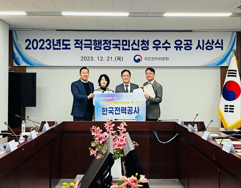 ▲ 한전, ’23년 적극행정국민신청 우수사례 국민권익위원장상 수상 (사진=한전) |