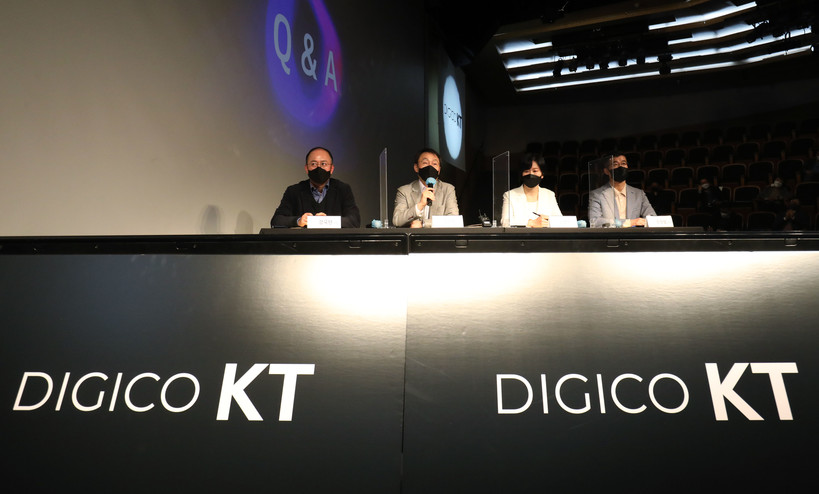 ▲구현모 KT 대표가 지난해 3월 23일 서울 종로구 광화문 KT스퀘어에서 열린 KT그룹 미디어콘텐츠 사업전략 발표 기자간담회에서 취재진 질문에 답하고 있다. (사진=newsis) |