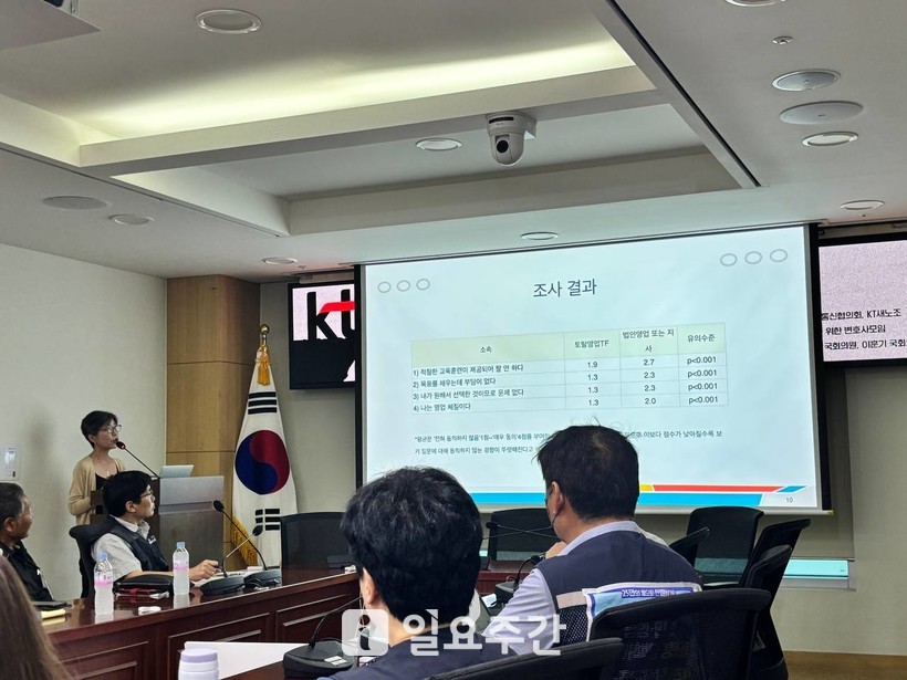 [일요주간=임태경 기자] KT의 무리한 구조조정과 영업직 강제 전환이 노동자들의 정신건강을 위협하고 죽음으로까지 내몰고 있다는 건강실태조사가 국회 기자간담회를 통해 공개됐다.