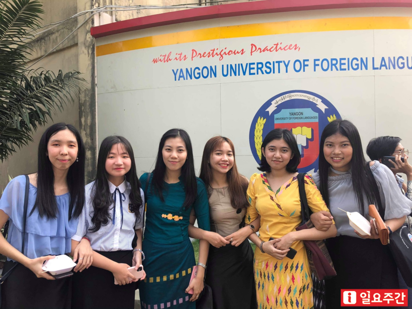 ▼ 원래 언어에 관심이 많은 편이다. 고등학교 때 중국어를 익혔고, 한국어는 한류문화를 접하면서부터 배우고 싶었다. 그래서 대학을 미얀마 양곤외국어대학 한국어과에 들어가게 되었다. 미얀마에 한국 기업의 진출이 늘어나고, 점차 투자도 늘고 있어 한국어를 배우면 한국 기업에 취업할 기회도 많아져서 특히 젊은이들에게 한국어 강좌는 인기가 많다.