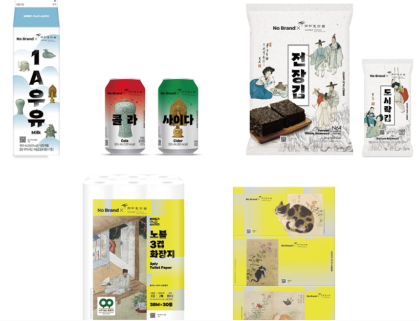 대표적으로 노브랜드를 대표하는 ‘노브랜드×간송미술관 1A 우유(900ml)’는 고려청자를 비롯해 간송 전형필 선생이 수집한 국보 청자상감운학문매병, 청자사자형향로 등을 패키지 디자인에 활용해 한국의 미를 자연스럽게 경험할 수 있도록 했다.