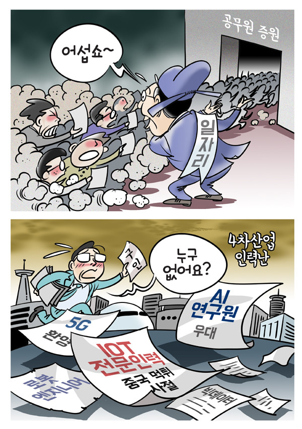 [일요주간 만평] 정부, 공무원 등 일자리 확충 안간힘...4차산업 인재 양성도 시급