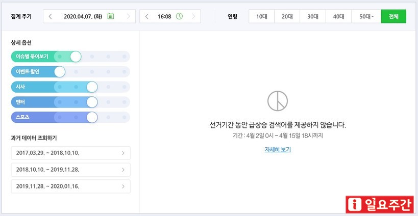 ▲ 네이버는 선거기간중 급상승 검색어를 제공하지 않는다 (이미지캡쳐=일요주간) |