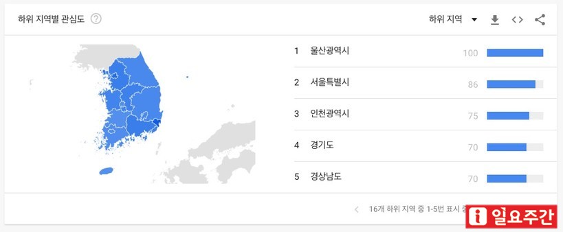 구글 트렌드는 지역별로 검색어 관련 정보 보여주며 인기 상승
