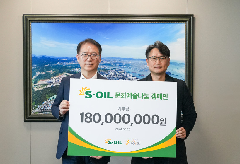 [일요주간 = 조무정 기자] S-OIL(대표 안와르 알 히즈아지)은 20일 서울 마포 본사에서 ‘2024년 문화예술&나눔 캠페인 기부금 전달식’을 갖고 아트로버컴퍼니(대표: 정현욱)에 공연예술 후원금 1억 8000만 원을 전달했다고 20일 밝혔다.