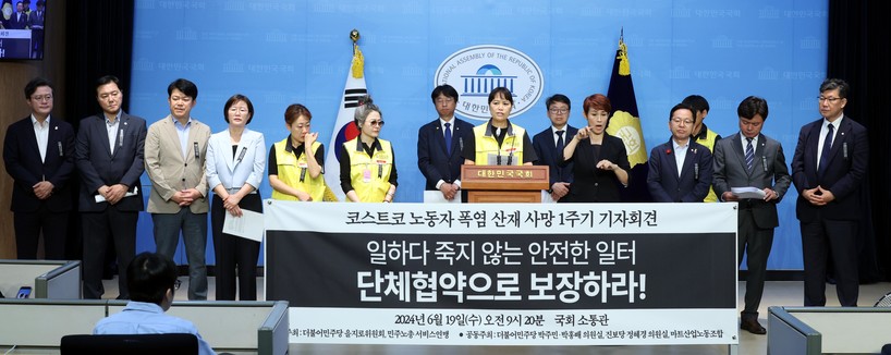 마트산업노동조합(이하 마트노조)은 코스트코 하남점에서 폭염 산재사망 사고가 발생한 지 1주년을 맞아 민주노총 서비스연맹, 더불어민주당 을지로위원회의 주최로 19일 국회 소통관에서 기자회견을 개최해 코스트코의 노동환경 실태를 고발하고 대책마련을 요구하고 나섰다.