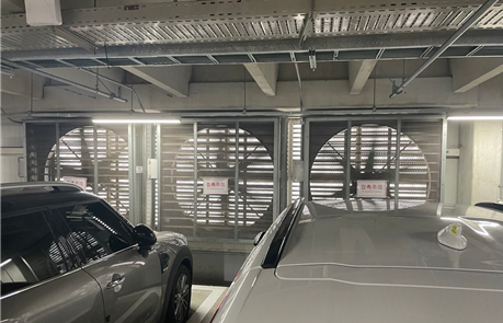 ▲주차장 공기를 외부로 배출하는 대형 공기순환팬의 고장으로 100%