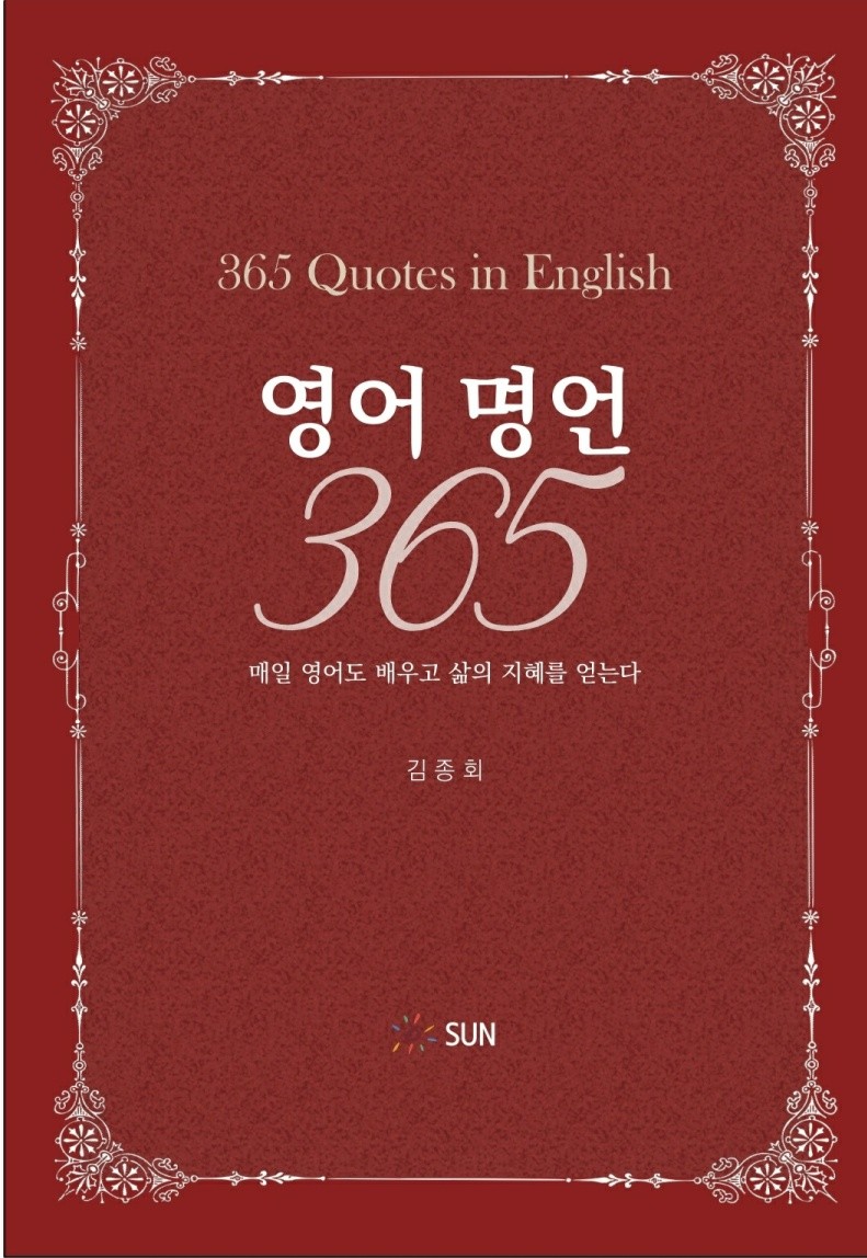 많은 분들이 책으로 출판하기를 요청해서 이번에 ‘영어 명언 365’라는 책을 발간했습니다. 하루에 한 문장씩 외울 수 있도록 365개의 영어 명언을 수록하고, 번역하여 해설까지 곁들였지요. 이 책을 통해 영어도 배우고 삶의 지혜도 깨우칠 수 있기를 바라는 마음으로 펴냈습니다.