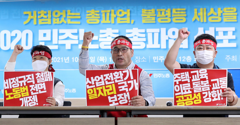 민주노총은 특히 이번 총파업을 통해 ▲비정규직 철폐 및 노동법 전면 개정 ▲코로나19 재난시기 해고금지 등 일자리 국가 보장 ▲국방예산 삭감 및 주택·의료·교육·돌봄 공공성 강화 등 3대 목표를 쟁취하겠다는 계획이다.