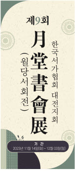[일요주간=김영란 기자] 한국조폐공사(사장 성창훈, www.komsco.com) 화폐박물관(대전 유 성구 소재)은 11월 14일(화)부터 12월 17일(일)까지 박물관 내 특별전시실에서 한국서가협회 대전지회의 ‘제9회 월당서회전(月當書會展)’을 개최한다.
