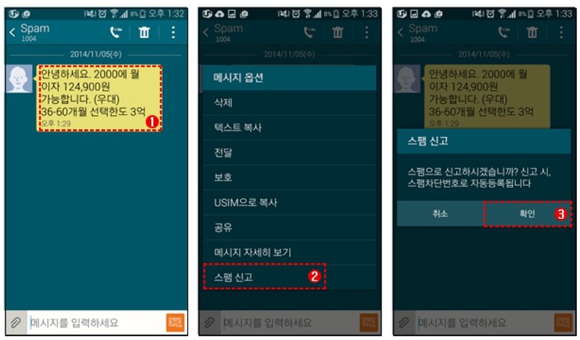 ▲ 불법스팸 간편신고 이용방법. (사진=방송통신위원회)