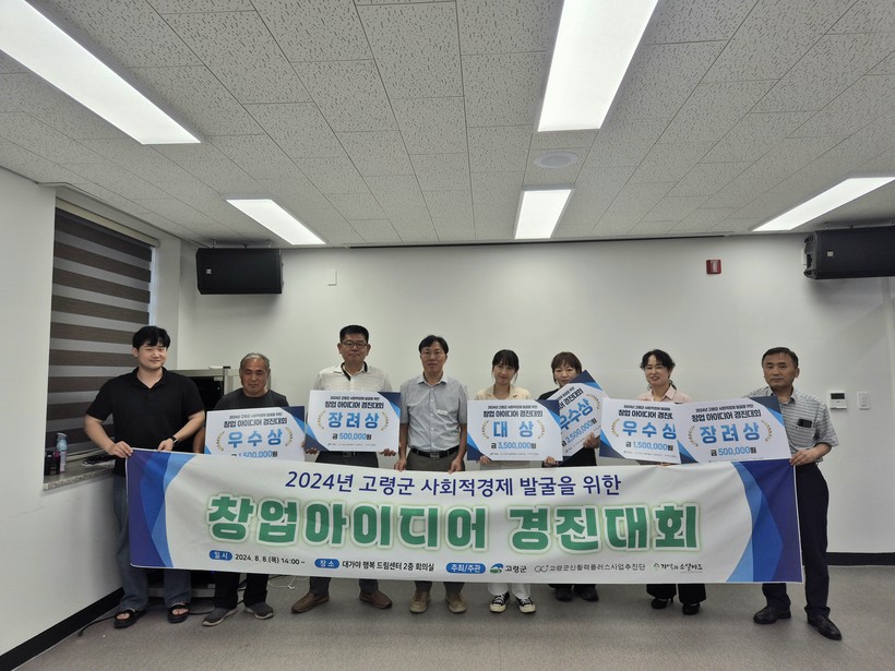 고령군(군수 이남철)은 “사회적경제 발굴을 위한 창업아이디어 경진대회에 참여한 창업가들의 열정적이고 창의적인 아이디어들을 보니 고령군의 미래도 밝을 것 같다”며 “앞으로도 많은 창업가들이 지역과 상생하는 사회적경제기업으로 진입하여 안정적으로 성장할 수 있도록 다양하고 체계적으로 지원하겠다”고 밝혔다.