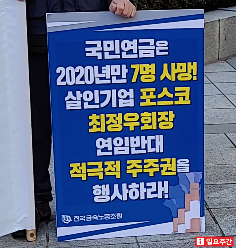 [일요주간 = 김상영 기자] “환경오염 및 직업성 암, 산업재해 피해를 불러일으킨 포스코의 정기주주총회(3월)에서 (포스코의 대주주인 국민연금은) 공익이사를 선임하고 문제이사 선임에 반대할 것을 요구한다.”