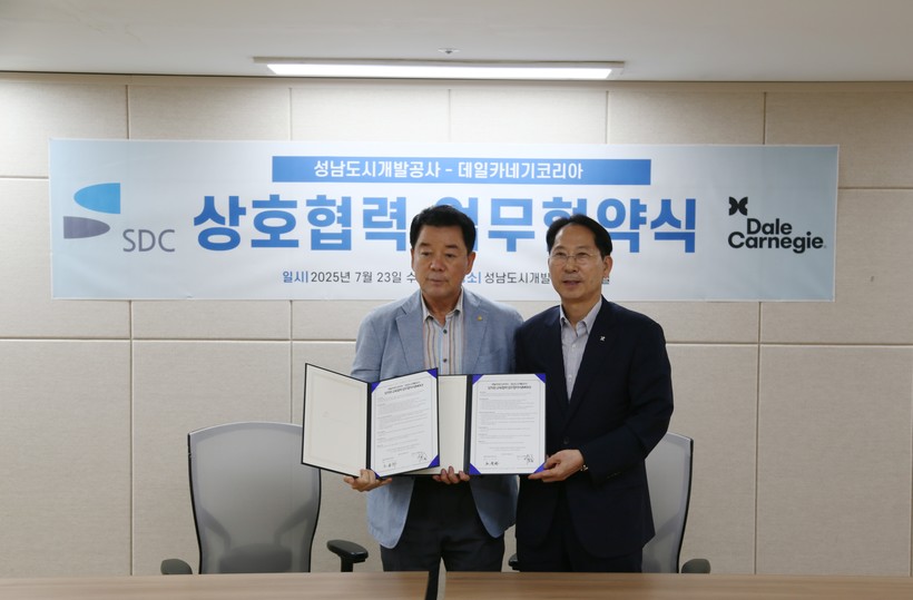 [일요주간 = 엄지영 기자] 글로벌 교육 전문기관 데일카네기코리아(대표 노운하)와 성남도시개발공사(사장 이희석)는 지난 23일, 직원 교육과 리더십 역량 강화를 위한 업무협약(MOU)을 체결했다고 24일 밝혔다.