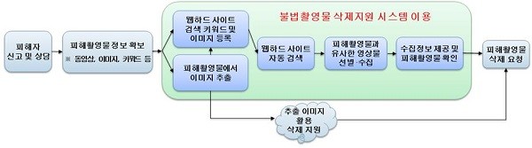 삭제지원 시스템은 AI 기술을 활용해 피해자가 신고한 불법촬영물에서 이미지를 추출, 웹하드 사이트에서 피해촬영물과 유사한 영상물을 자동으로 선별·수집하는 기능 등을 갖추고 있다.