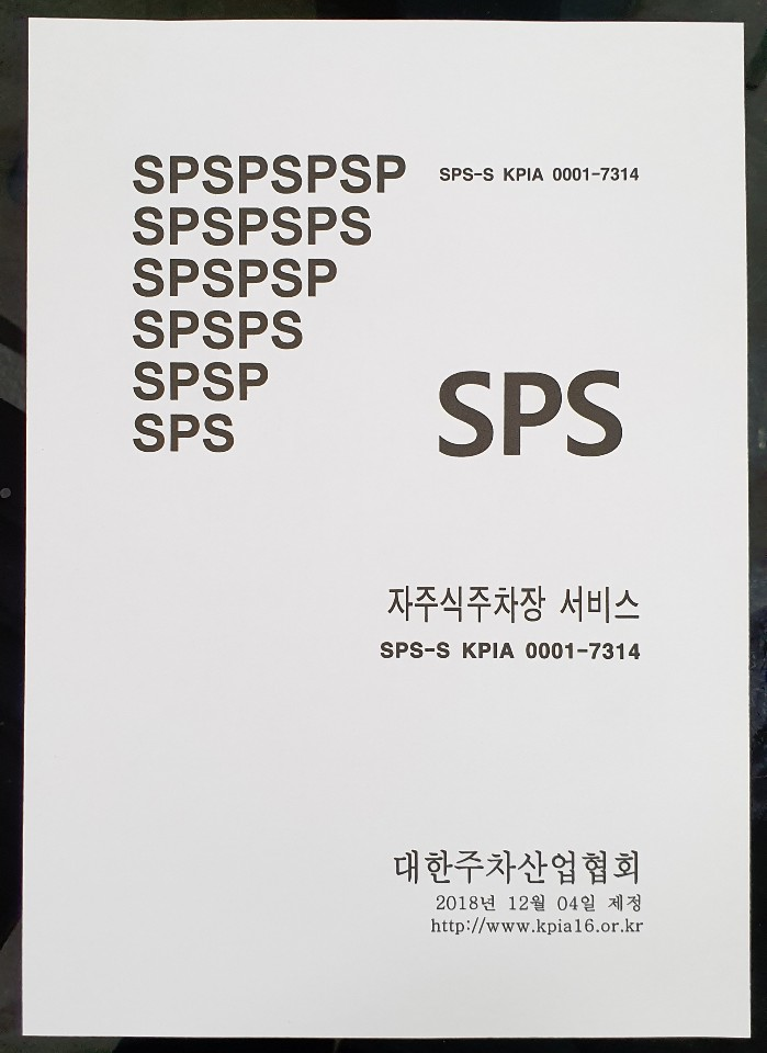 ▲ 단체표준인증서비스는 KS나 ISO처럼 인증번호가 있는데, 자주식주차장(SPS-S 0001-7314), 기계식주차장서비스(SPS-S 0002-7315)로 구분된다.