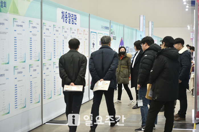 ▲지난달 26일 대구 북구 산격동 엑스코에서 열린 현장채용박람회에서 청년 구직자들이 채용알림판을 보고 있는 모습. |