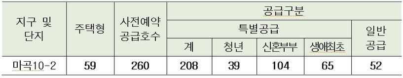 SH공사는 SH인터넷청약 누리집(홈페이지)을 통해 마곡지구 10-2단지 사전예약 특별공급 접수를 받는다고 밝혔다. 특별공급 접수는 16일부터 17일까지이고 일반공급 접수는 18일부터 19일까지 진행된다.