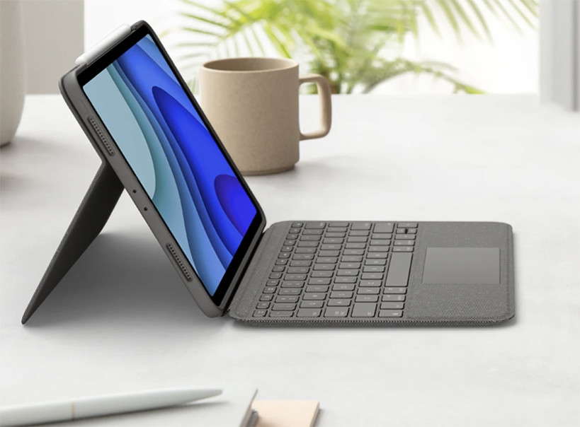 로지텍 폴리오 터치는 트랙패드가 탑재되어 아이패드를 노트북 대용으로 활용할 수 있는 키보드 케이스다. 스마트 커넥터를 통해 호환돼 빠르고 편하게 페어링과 작동이 되는 점이 특징이며, 아이패드 에어에서 직접 전원을 공급받아 별도 충전이 필요 없다.