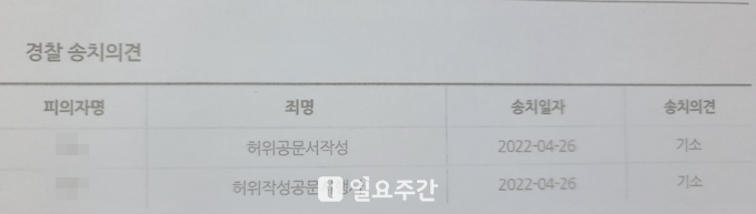▲경찰에서 C 검사의 비위 사건에 대해 기소 의견으로 검찰에 송치했다.(자료=제보자 제공) |