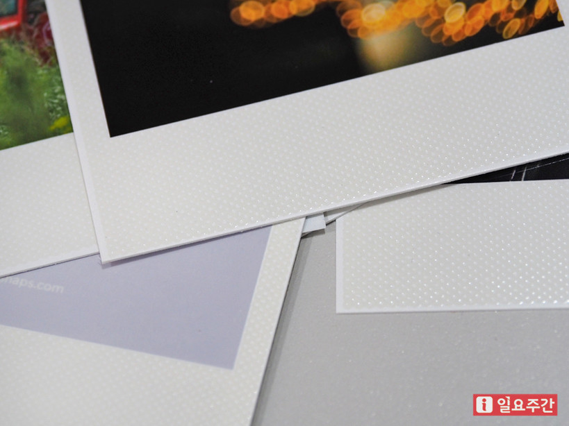 또 스마트폰 카메라나 디지털 카메라로 찍은 사진을 사용하여 선명한 이미지를 얻을 수 있고, 고급스러운 유광 코팅이 한결 멋스럽게 보인다. 폴라로이드 사진의 특징인 테투리 비네팅까지 살아있어 깊이감까지 느껴져 추억 소환용으로 손색이 없다.