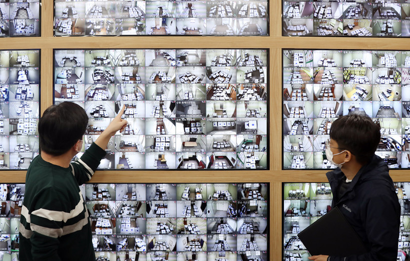 ▲선관위 종합상황실에서 각 투표장을 CCTV로 감시중인 통합관제센터 (사진=뉴시스) |