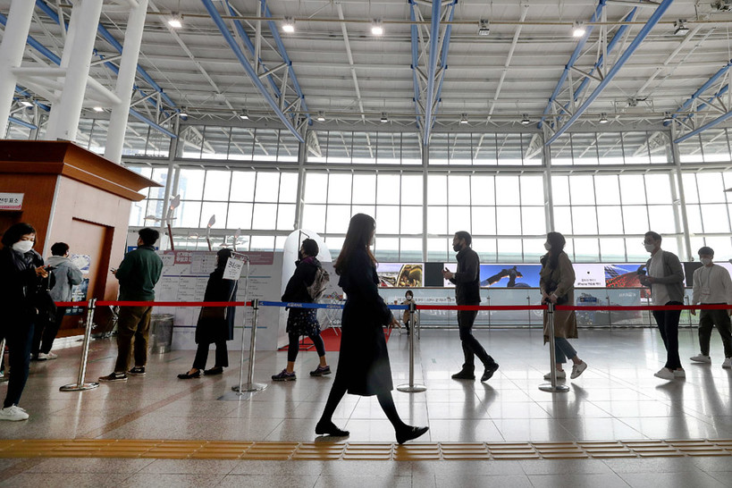 ▲서울 용산구 서울역에 마련된 남영동 사전투표소에 줄선 유권자들 (사진=뉴시스) |