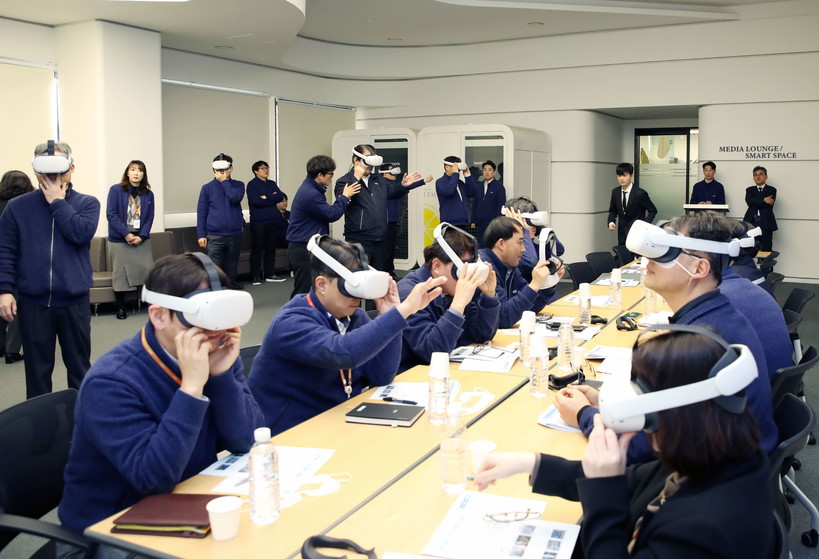 이날 임원회의는 기존에 회의장에서 임원들만 참석해 진행하던 방식에서 벗어나, 직원들이 참관·의견을 개진할 수 있도록 개방 공간인 본사 미디어 라운지에서 진행됐으며, 한난이 직원 역량 강화 및 업무효율화 목적으로 진행중인 메타버스를 활용한 안전교육, 직무교육 VR컨텐츠를 임직원이 직접 경험해보고 느낀점과 개선방안 등을 허심탄회하게 논의했다.