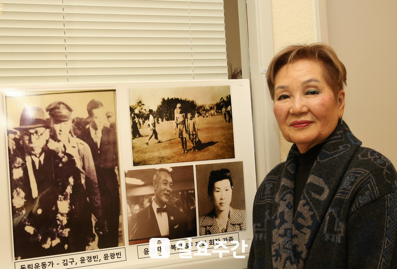 윤 회장은 혼이(정신)없는 민족은 발전하지 못한다는 신념을 갖고 있다. 그녀의 부친은 일제 강점기에 광복군으로 활동한 윤광빈 지사이다. 독립운동을 하고 있던 와중에 조국이 해방되어 한국으로 귀환하게 되는데 그 당시 5살의 어린 나이에도 부친의 큰 뜻을 알고 그 뜻을 따르는 일을 지금도 하고 있다.