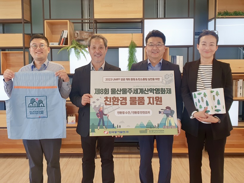 [일요주간=김영란 기자] 한국동서발전(주)(사장 김영문)는 ‘제8회 울산울주세계산악영화제’의 성공 개최를 기원하며 1천만원 상당의 업사이클링 기념품을 운영위원회에 전달했다고 12일(목) 밝혔다.