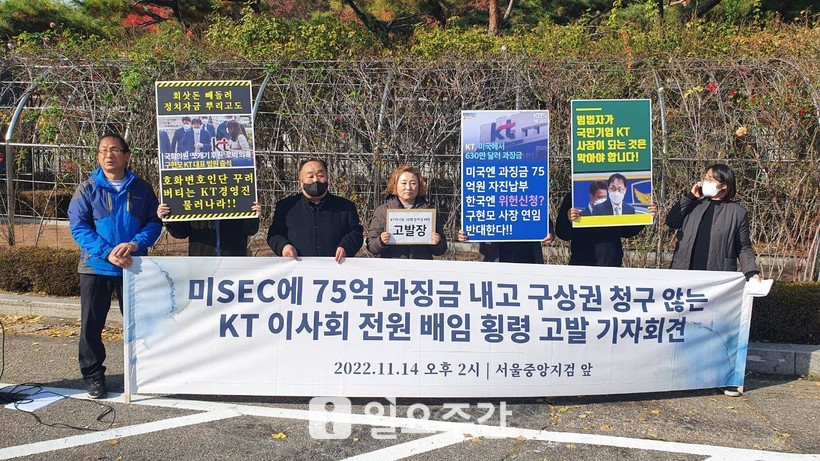 이어 “그런데 이러한 경영진의 잘못으로부터 주주의 이익을 보호해야 마땅한 KT이사회는 이 범죄사실에 대한 책임 규명과 그 피해액에 대한 원상회복 노력을 전혀 하지 않았다”며 “그 결과 KT에서는 회삿돈이 뭉텅이로 없어졌는데도 책임지는 이가 단 1명도 없고 불법경영에 따른 과징금을 해당 임원들에게 청구하기 위해 이사회가 노력하는 모습이 보이지 않고 있다”고 꼬집었다.
