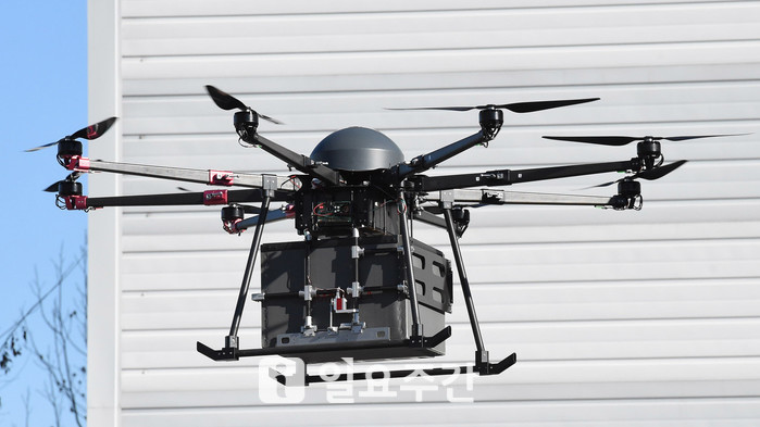 ▲무인기 산업 드론을 이용해 물품배송을 할 수 있는 물품배송 드론. |