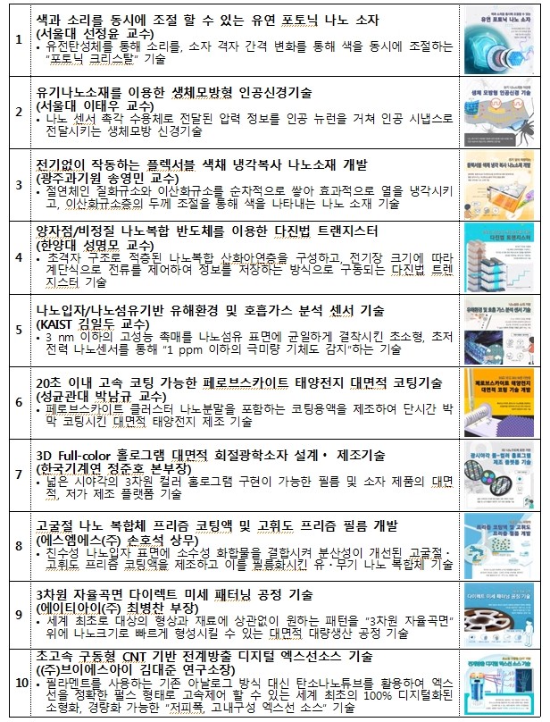 | ▲정부가 올해의 10대 나노융합 신기술을 선정했다.(사진=산업통상자원부) |