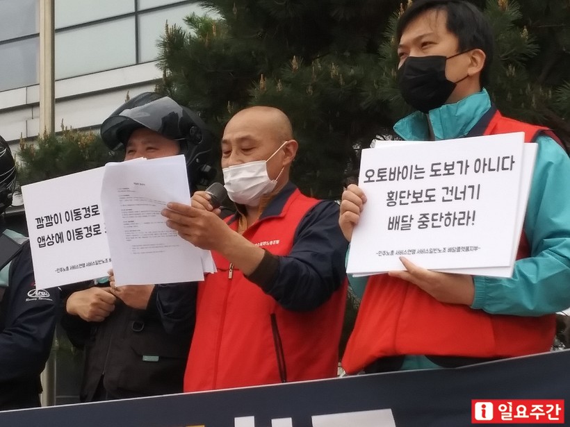 또 “노조에서는 즉각 항의했고 배민에서는 실제 경로와 다를 수 있다고 간접적으로 오류를 인정했고 정식 진행을 10일 정도 미뤘지만, 여전히 오류투성이로 경로를 제시한다”면서 “기본료에 100m당 80원을 추가해서 받는 것인데 200~300m 짧아지면 라이더들은 건당 200원 정도의 손해를 감수해야 하고 반대로 월 1000만 건이 넘는 배민 입장에서는 큰 수입을 올리는 것”이라고 꼬집었다.