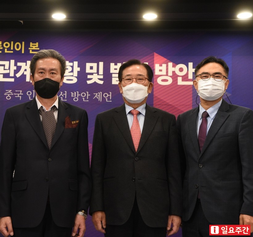 | ▲ 왼쪽부터 포럼을 개최한 한중글로벌협회 강성재 부이사장, 이사장 박준영 前 전라남도 도지사, 우수근 회장 |