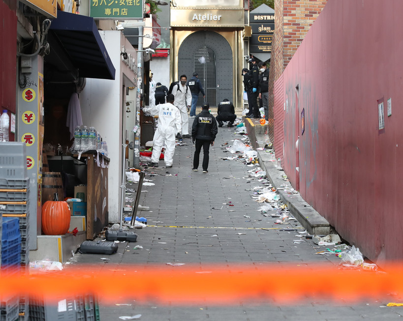 ▲이태원 압사 참사를 수사 중인 서울경찰청 수사본부와 국립과학수사연구원들이 31일 서울 용산구 이태원 압사 참사 현장을 합동감식 하고 있다.(사진=newsis) |