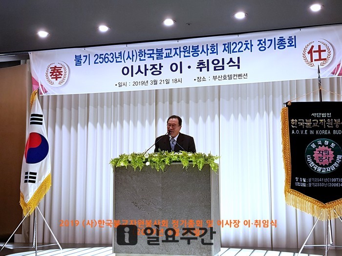 [일요주간 = 김쌍주 대기자] (사)한국불교자원봉사회 이사장 이·취임식이 지난 21일 오후 7시 부산광역시 중구 중앙동 소재 부산호텔에서 불교계 스님 등 내빈 및 회원 등 100여명 참석한 가운데 성황리에 열렸다.