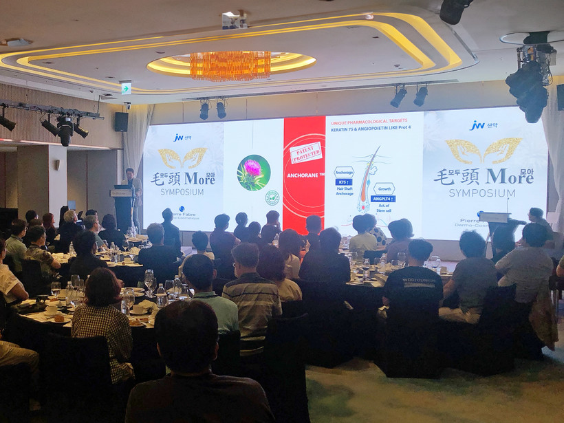 이번 심포지엄에서 연사로 나선 분당서울대병원 피부과 허창훈 교수는 새로운 모발 관리 방법으로 JW신약이 국내 출시한 ‘듀크레이 네옵타이드 엑스퍼트’를 소개했다. 허 교수는 모발 관리 화장품의 특장점과 함께 여성 환자도 안전하게 사용 가능한 점을 참석자들에게 설명하는 시간을 가졌다.