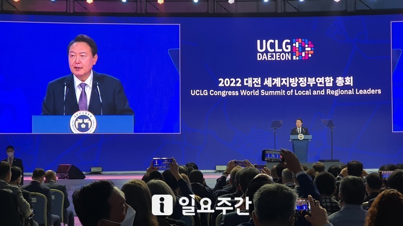 윤 대통령은 “세계적인 위기와 문제해결을 위해서는 지방정부의 역할이 중요하다”며, “이번 대전총회를 통해 세계 지방정부의 연대와 교류가 강화되기를 기대한다”고 강조했다, 또한 윤 대통령은 해외 참가자들의 대전 방문을 환영하고, 대전에서 멋진 추억을 만들어 가기를 희망한다고 말했다.