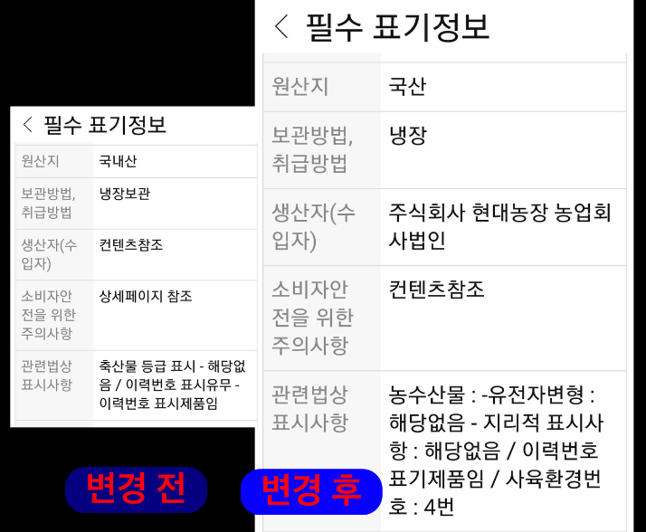 본지의 이 같은 보도 전까지만해도 쿠팡 로켓프레시를 통해 판매되던 달걀 상품정보에는 사육환경번호가 표기되지 않았다. 다만 상품정보 내 예시에서 난각번호 확인방법을 소개하고 있는데, 이마저도 일부 소비자들이 볼 때는 해당 상품의 사육환경번호인지, 참고 예시용인지 명확하게 구분이 되지 않아 상품을 배송 받고서야 상품정보(사육환경번호)와 실제 달걀에 표기된 사육환경번호가 다르다는 것을 알 수 있었다.