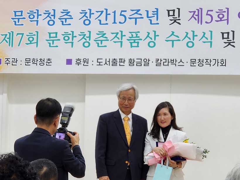 ▲ 2023년 제7회 [문학청춘] 작품상 수상식에서 유자효 선생님과 함께