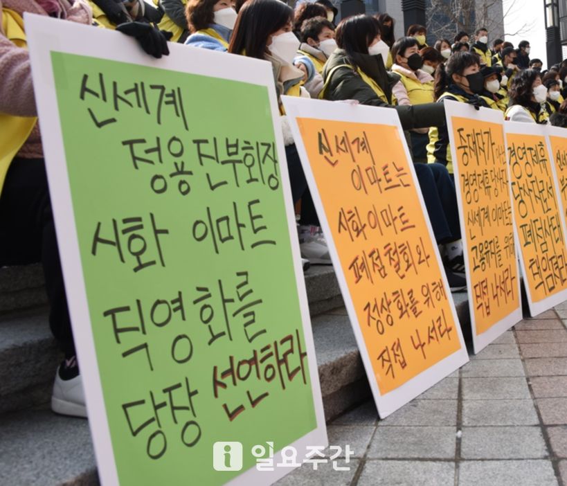 그러면서 “시화이마트의 운영자는 비록 성담이지만 지난 22년 간 경영제휴의 당사자로서 이마트의 브랜드를 통해 수백억의 이익을 얻어왔던 신세계이마트 또한 작금의 시화이마트 폐점 사태에 책임이 없다고 할 수 없다”면서 “신세계이마트는 방관자로서 뒷짐만 지고 있어서는 안 된다”고 목소리를 높였다.
