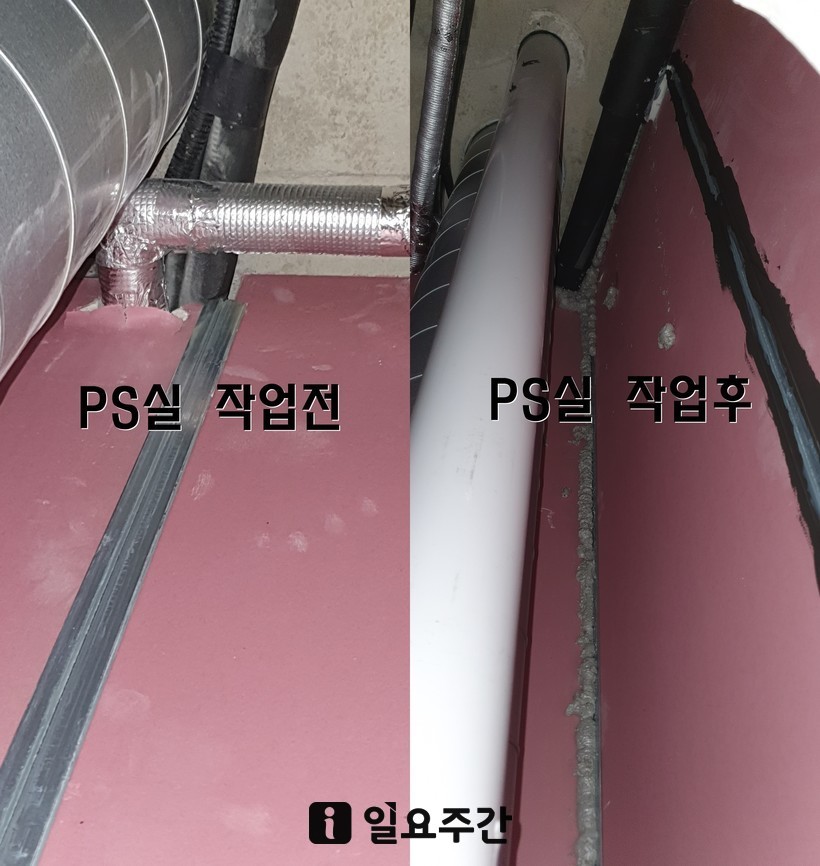 이러한 내용을 센터 내 고객센터에 접수하니, 3월 16일 김 모 담당자가 방문했다. 제보자에 따르면 당시 김 모 담당자는 “아래와 양옆 세대가 입주하지 않아서 춥다”라는 식으로 설명했다고 한다. 담당자는 익일 PS 실(배관들의 수직관)과 양수기함 내 석고판 틈새에 실리콘을 재시공했다.
