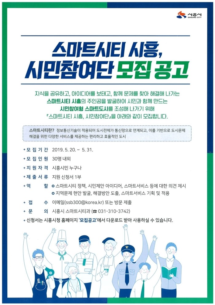 신청을 하고자 하는 시민은 시흥시청 홈페이지 '모집공고'란의 신청서를 작성해 담당자 이메일로 보내거나 스마트시티사업단 스마트시티과에 직접 방문 제출하면 된다.